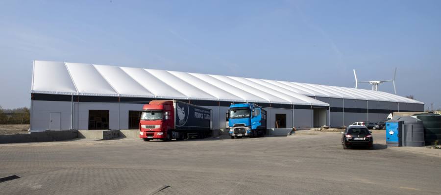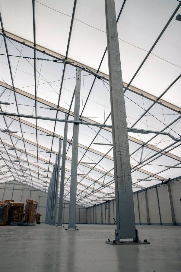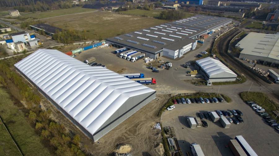 Dalším příkladem tohoto typu zateplené stanové haly, která byla navržena jako skladovací hala přizpůsobená místnímu zatížení větrem a sněhem, je sklad 20x35x4,5 m realizovaný pro školku okrasných keřů Zymon. Hala s nakládacími rampami zlepší logistiku dodávek rostoucímu počtu zákazníků z Polska a Evropy.