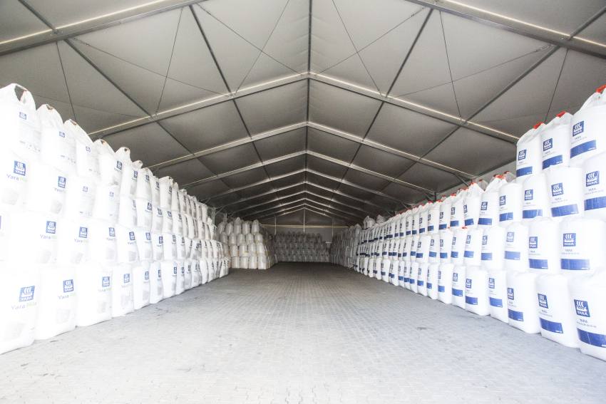 Logistické centrum v posledních letech výrazně zvětšilo své skladovací prostory. Byly vybudovány masivní betonové zásobníky pro sypké zboží, jako jsou hnojiva. Tuto investici bylo třeba rychle doplnit o linku na třídění a paletizaci hnojiv a skladovací prostory pro vytříděná hnojiva. Bylo důležité chránit skladované zboží před vlhkostí kvůli možnosti uvolňování dusíku. Při hledání dodavatele skladů chtěla společnost řešení, které by bylo cenově výhodné a splňovalo požadavky na tepelnou izolaci, funkčnost, trvanlivost a odolnost vůči povětrnostním vlivům. Volba padla na tepelně izolované stanové haly s čerpanou střechou a sendvičové panely.